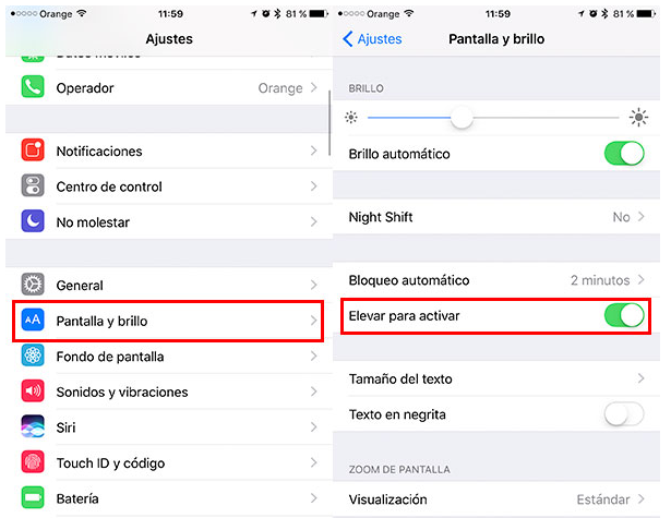 Con iOS 10 el iPhone recibió una nueva y práctica función. Ahora ya no será necesario tocar el botón de inicio o el de encendido para que se nos encienda la pantalla cuando tengamos el móvil. Con esta opción solo necesitaremos levantar el móvil y se activará la pantalla. Si muchas veces has querido mirar solo la hora y has acabado desbloqueando el iPhone, esto te interesa. Lo habitual es que esta opción venga activada por defecto, pero si no es así activarla es muy fácil. Solo tendremos que ir a Ajustes y después entrar en «Pantalla y brillo». Aquí tendrás que asegurar de que la opción «Elevar para activar» está marcada