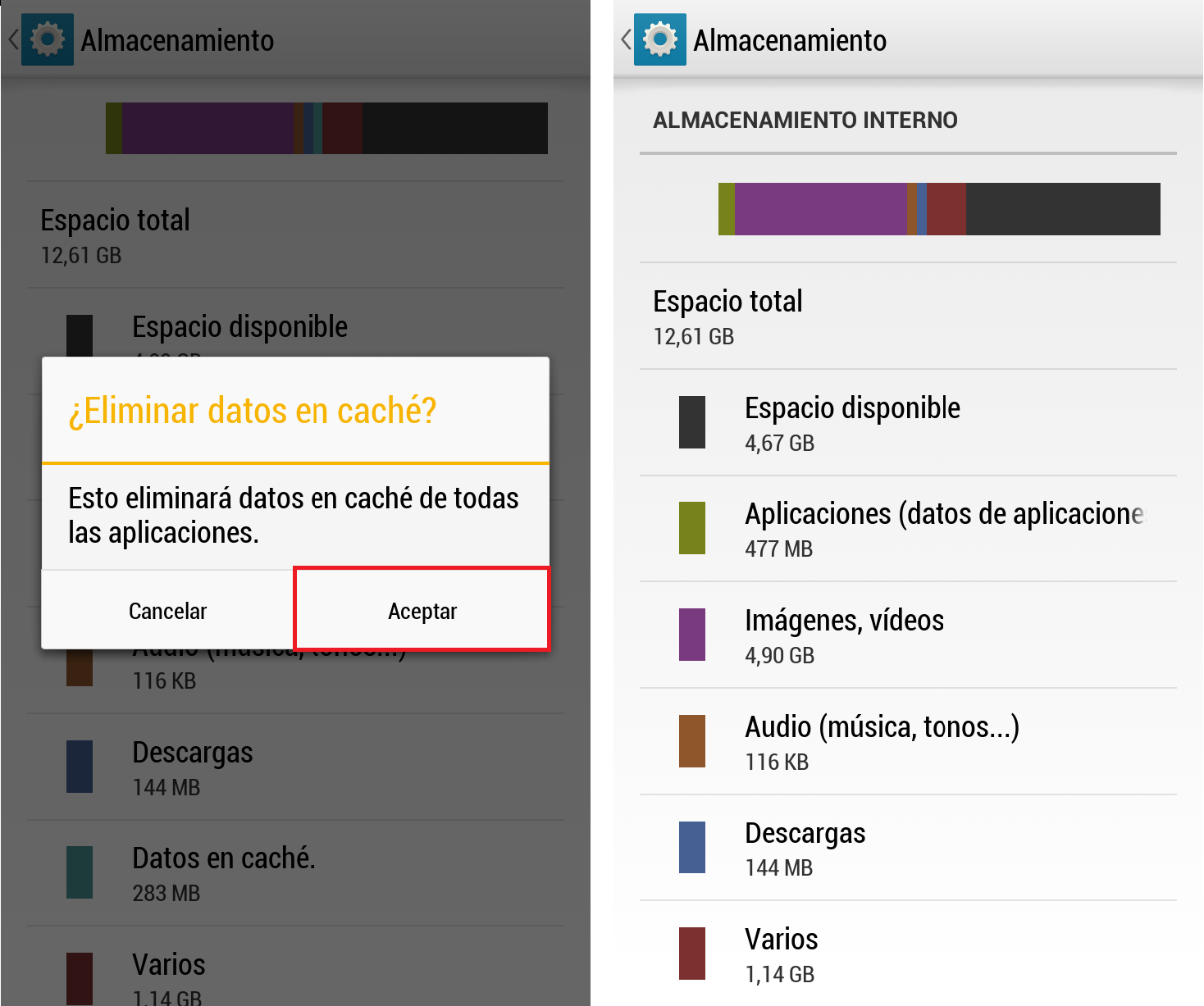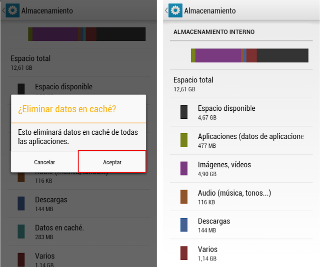 Cuando pulses sobre ese botón el cache de esa aplicación estará borrado, así es como se borra el caché de una aplicación en específica, ¿es fácil verdad? Ahora vamos a ver como borrar el caché de todas las aplicaciones a la vez.