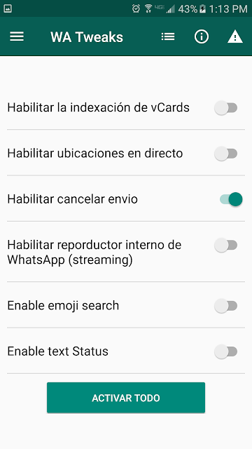 - La aplicación de WA Tweaks no es oficial de WhatsApp ya que es solo es un complemento.