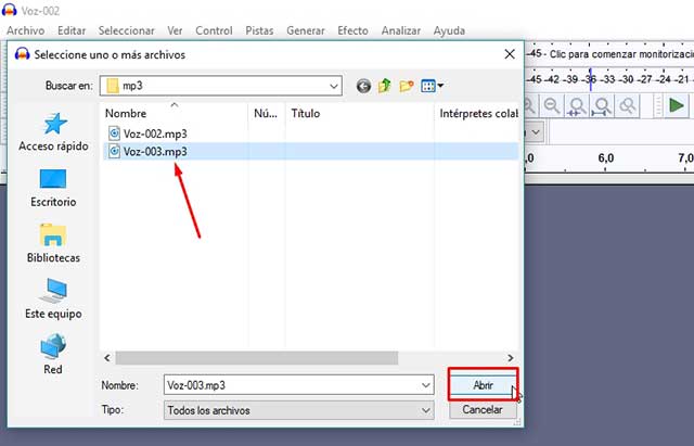 • Recuerda que el archivo de audio debe estar en un formato compatible con Audacity. En caso de no ser así solo convierte dicho archivo en .mp3.