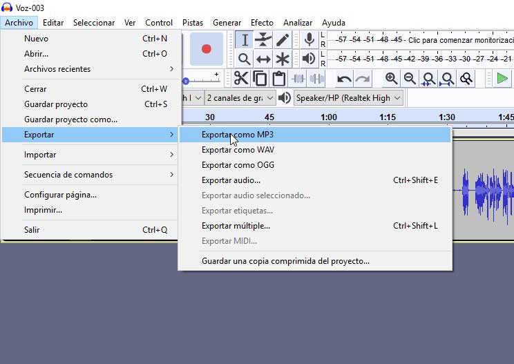 7. Por último exporta o guarda el audio donde tu quieras. Ya puedes hacer uso de este archivo.