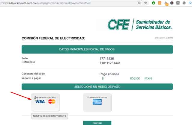 Pagar CFE con tarjeta de creditoo débito en los bancos