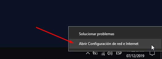 Procede a ir al área de las notificaciones y ubicar el símbolo de la señal wifi. Clic derecho sobre el símbolo y elegir la opción de «Abrir Configuración de red e internet«.