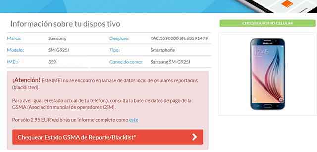 El hecho de que un número IMEI no se muestre en la lista negra de los resultados correspondientes a tu país u operadora no garantiza que no pueda estar en la lista negra después.