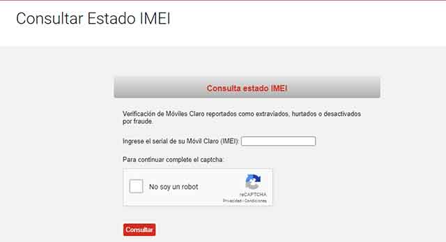 Para los usuarios de Colombia tenemos la página de Claro donde puedes saber si tu IMEI tiene reporte con ellos. Esto claro en caso de que tu terminal sea de la operadora de Claro.
