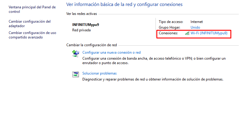 En el apartado de «Ver las conexiones activas» lo que tenemos que hacer es dar clic sobre nuestro adaptador de wifi.