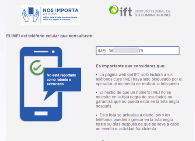 Con todo lo anterior hemos podido verificar si tu IMEI se encuentra reportado por robo o extravió, ya para finalizar este tutorial cabe mencionar que la base de datos de la página no se actualiza constantemente, así que si recién bloqueaste tu IMEI es probable que aún no te aparezca en los IMEI bloqueados, debes esperar unos días para que se anexe a la base de datos de los IMEI bloqueados por robo o extravió.