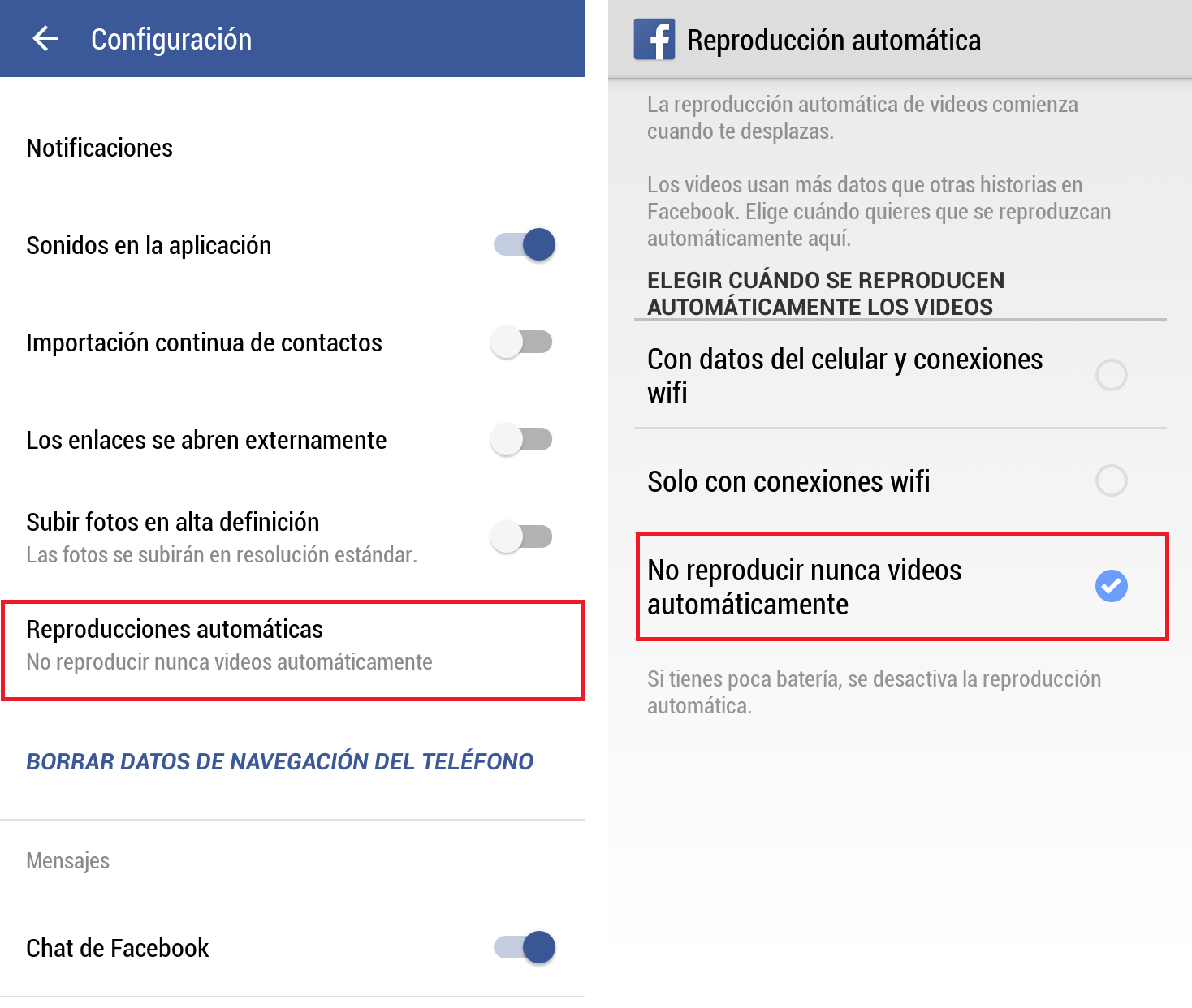 Cómo desactivar la reproducción automática de los vídeos en Facebook [App]