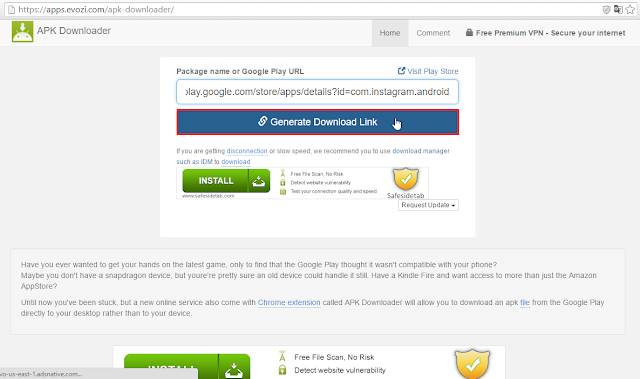 - Ahora nos dirigirnos a esta página llamada APK Downloader, ya estando ahí vamos a pegar el link antes copiado de la aplicación y clic en “Generate Download Link”.