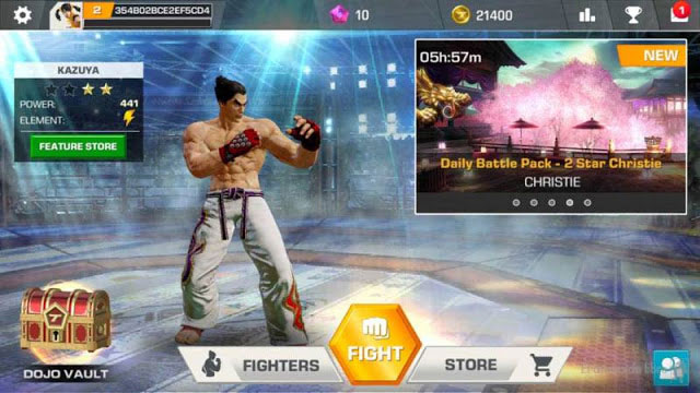 Para que el juego sea más adictivo podremos elegir entre tres opciones para jugar. La primera es el modo historia, donde iremos avanzando en la lucha contra una serie de contrincantes cada vez más difíciles hasta llegar al último nivel. La segunda opción es el modo online, llamado Dojo, que permite crear un equipo con nuestros personajes y luchar contra otros jugadores. Además cada mes habrá nuevas posibilidades de alcanzar ciertos premios si acabamos entre los mejores y la tercera opción de Tekken para android es la de los eventos en vivo, competiciones temporales que se pueden disfrutar de forma diaria, semanal o mensual y que nos darán la posibilidad de jugar de forma innovadora. Y contra personajes extraños.