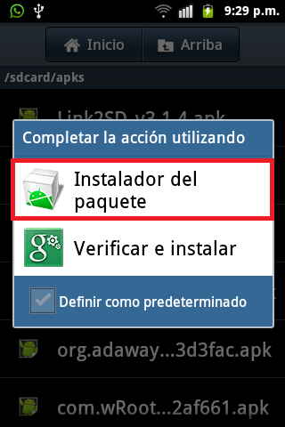 2.- Clic en «Link2SD_3.1.4.apk» y seleccionamos «Instalador del paquete«.
