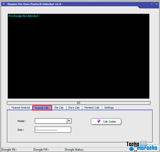 - Cuando tengas el archivos descargado procede a descomprimir. Ahora Ejecutar el programa «firedongle_cracked_huawei.exe» y ve a la pestaña de «Huawei Calc«.