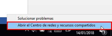 En versiones más recientes de Windows 10 elegir «Abrir Configuración de red e Internet«. Luego en la ventana de Configuración clic en «Centro de redes y recursos compartidos«.