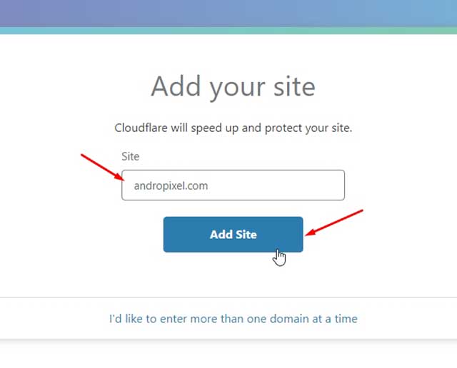 - Iniciar sesión y posteriormente hay que agregar un sitio web. Para esto dar clic en el botón «+ Add Site«. Escribir el dominio sin www tal como se muestra en la imagen. Después dar clic en el botón «Add Site«.