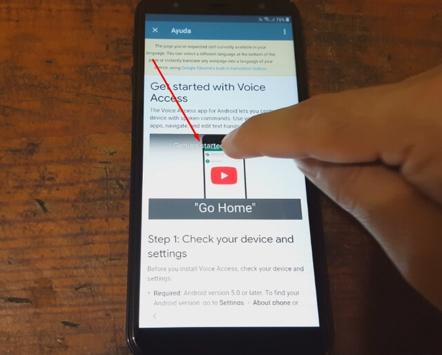 5.- Ahora si ya podemos manipular el teléfono de manera normal. Nos vamos a la opción de «Ayuda y comentarios» y después seleccionar «Get started with Voice Access» [Para que se muestren estas opciones debes estar conectado a internet, lo que se dijo en el paso 1].