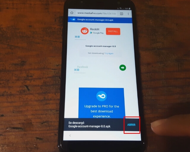 10.- Nuevamente estando en el navegador vamos a buscar el siguiente link: bitly.com/2S7b7Kt y descarga la aplicación BypassFRP. Cuando finalice la descarga de la app ábrela e instala dicha aplicación.