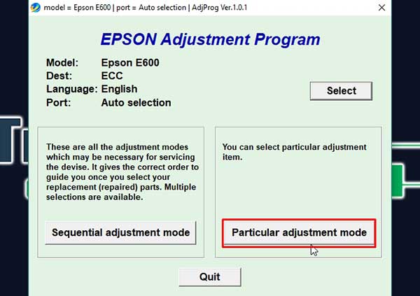 Descargar reset Epson E600 Adjustment program