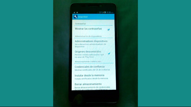 1. Nos vamos a Ajustes –> Seguridad y marcamos la opción de Orígenes Desconocidos.