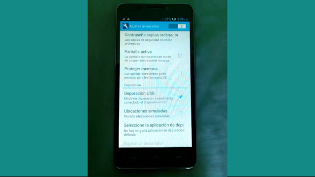 2. Nos dirigimos a Acerca del Teléfono –> Ajustes Avanzados y marcamos la Depuración USB.