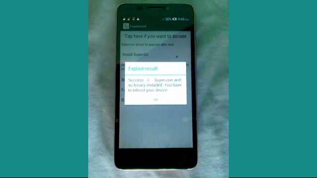 • Instalar el Framaroot, después abrirlo y en las opciones que nos aparezcan probaremos con cualquiera de ellas, les saldrá un mensaje que dirá Success, con eso el celular quedara Rooteado, ahora reiniciamos el celular.